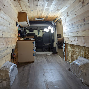 Lighting:  In addition to plenty of natural light through many windows we have 10 soft LED puck lights through the ceiling, under-cabinet lighting, dedicated touch activated gooseneck bed lights, front seat task light, and bright garage LED lights. The main ceiling lights are dimmable from 3 separate buttons so you can operate them from wherever you are in the van.  The light you need, right where you need it.